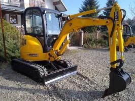 Sprzedam mini koparkę gąsienicową JCB 8025 ZTS w idealnym stanie technicznym. Rok produkcji: 2007. Maszyna posiada na wyposażeniu gąsienice gumowe, lemiesz hydraulicznie sterowany, instalację do młota wyburzeniowego oraz zamkniętą przeszkloną i ogrzewaną kabinę. Silnik Perkins Diesel o mocy 30kM. Głębokość kopania 2,9metra. Masa maszyny 2685kg. Szybkozłącze i Trzy łyzki /skarpowa i dwie do kopania/ w komplecie. Stan techniczny - idealny! Maszyna gotowa do pracy. Przebieg to jedynie 1016mtg.