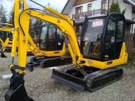 Sprzedam minikoparkę gąsienicową JCB 803 Plus z silnikiem Perkinsa o mocy 30 kM. Rok produkcji: 2005. Masa maszyny 2975kg. Zamknięta, przeszklona i ogrzewana !!! kabina, lemiesz hydraulicznie sterowany. Dwa biegi jazdy. Linia do osprzętu dodatkowego np. młota lub wiertnicy lub nożyc. Trzy łyżki. Stan maszyny idealny. Maszyna gotowa do pracy. Mocna maszyna. Przebieg tylko 2383mtg.!!!
